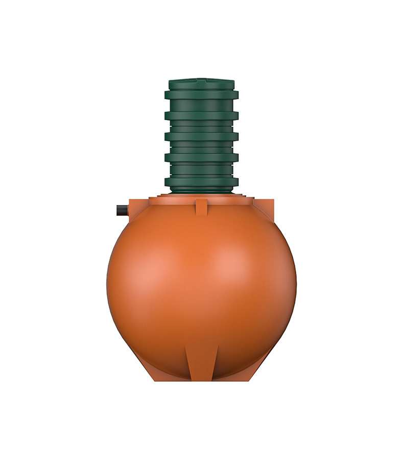 Компактный и сверхпрочный резервуар, изготовленный методом ротационного формования. Отсутствие швов и сферическая форма гарантируют абсолютную герметичность и устойчивость к давлению грунта без дополнительного бетонирования.