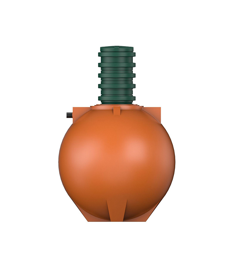 Компактный и сверхпрочный резервуар, изготовленный методом ротационного формования. Отсутствие швов и сферическая форма гарантируют абсолютную герметичность и устойчивость к давлению грунта без дополнительного бетонирования.