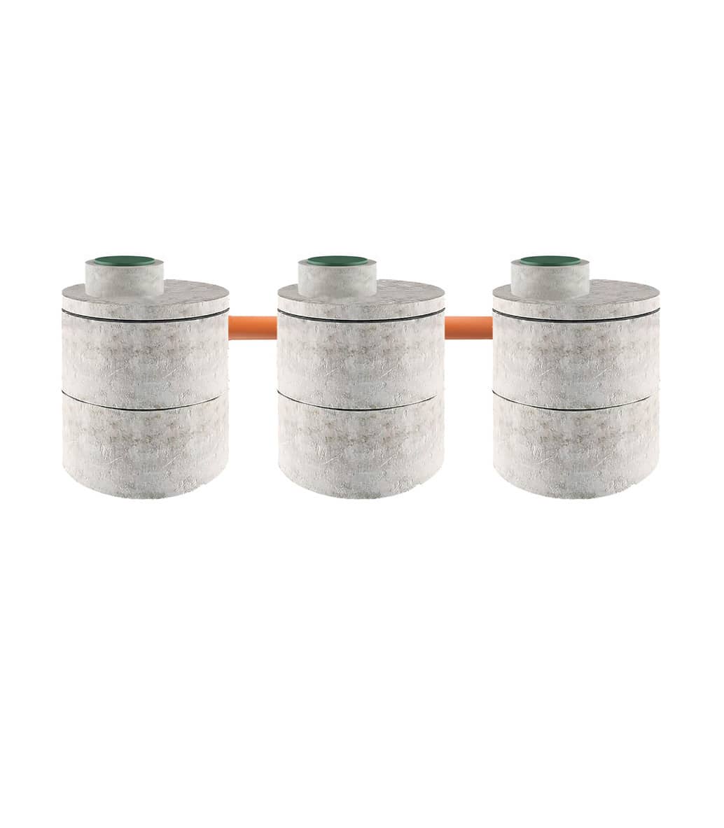 Она состоит из двух последовательных герметичных отстойников и одного фильтрационного колодца. Конфигурация обеспечивает качественную многоступенчатую очистку стоков, что минимизирует риск заиливания почвы и продлевает срок службы дренажа.