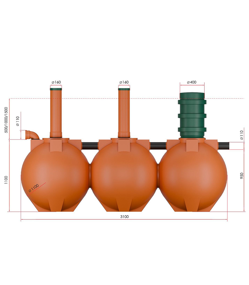 Септик Чистовод-4-Шар представляет собой цельнолитой горизонтальный резервуар, разделенный внутри на три герметичных отсека. Благодаря увеличенному объему (более 2 кубов), стоки дольше задерживаются в камерах. Септик энергонезависим, устойчив к залповым сбросам и подходит для постоянного проживания.