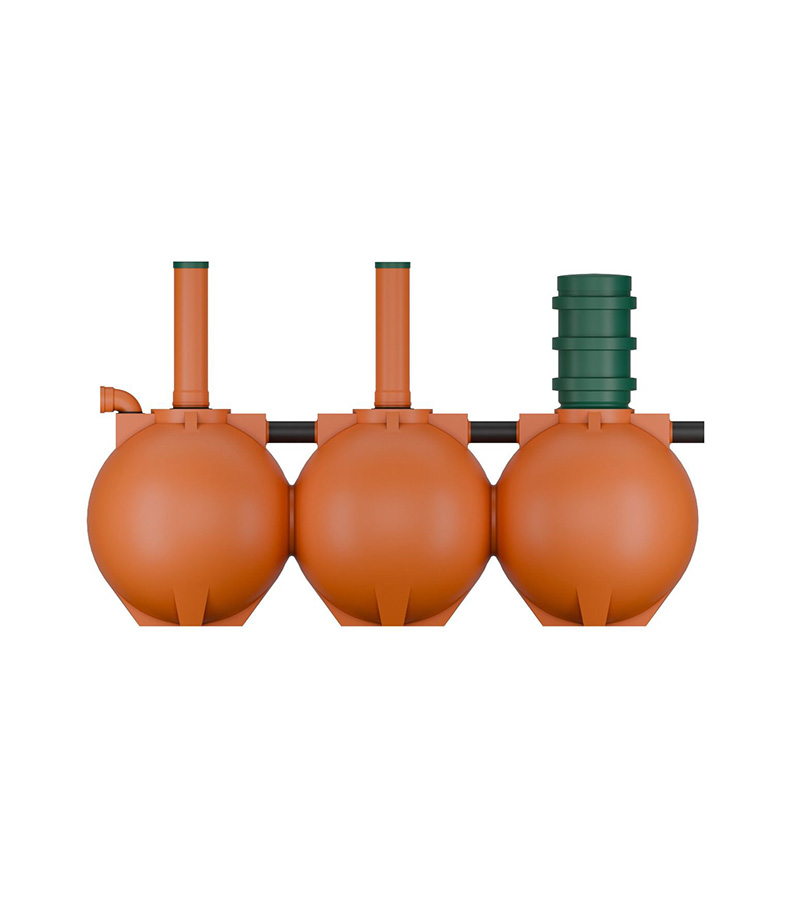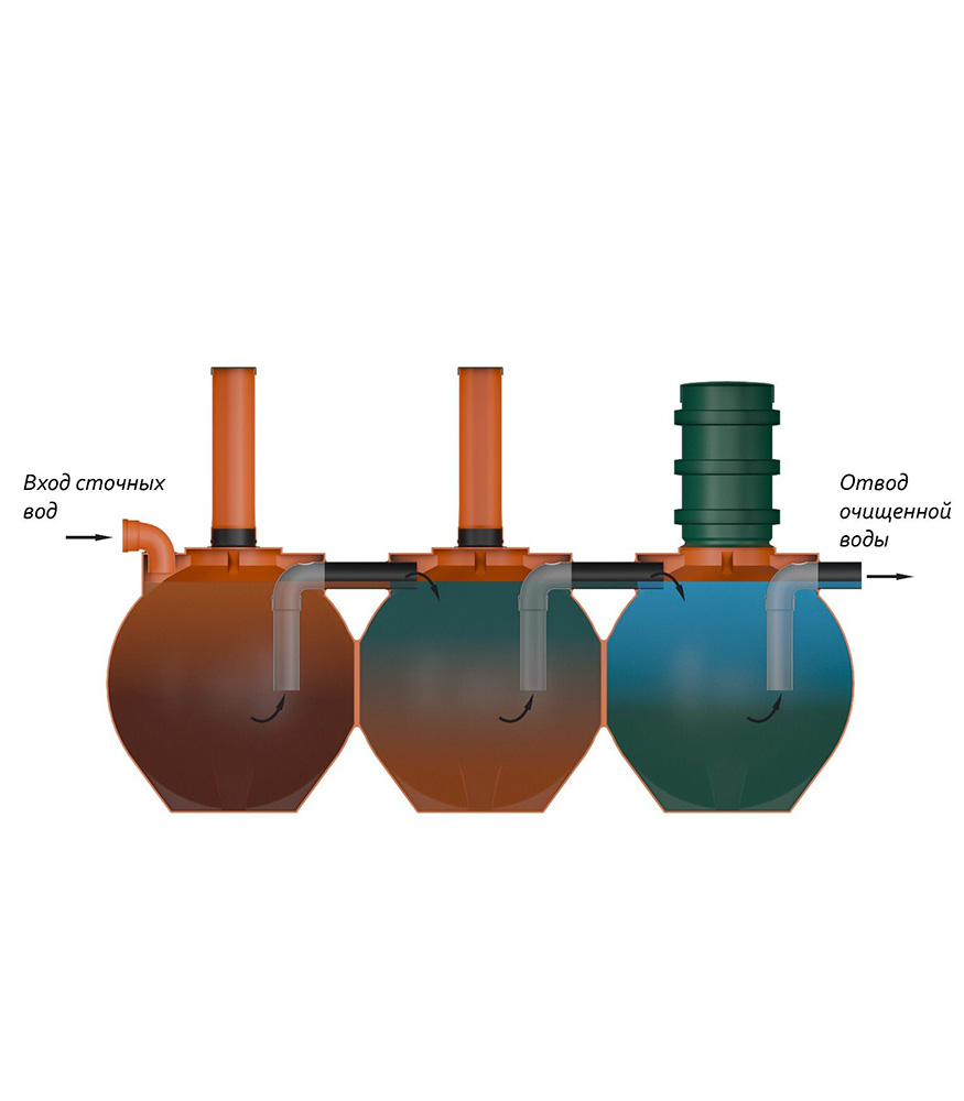 - Трёхкамерная монолитная конструкция без перегородок — каждый отсек отдельная прочная ёмкость, максимальная надёжность и лёгкость в обслуживании.